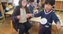 にじみ絵の羽子板作り…