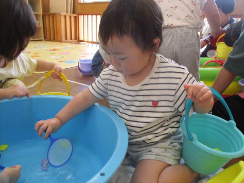 金魚を一生懸命にすくったり、バケツに入れる姿がかわいいですね💕
