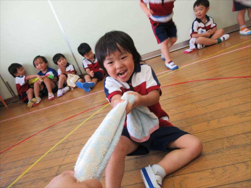 タオルの端と端を持って…よーいスタート!!