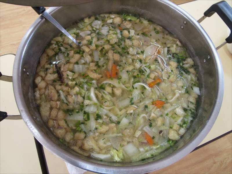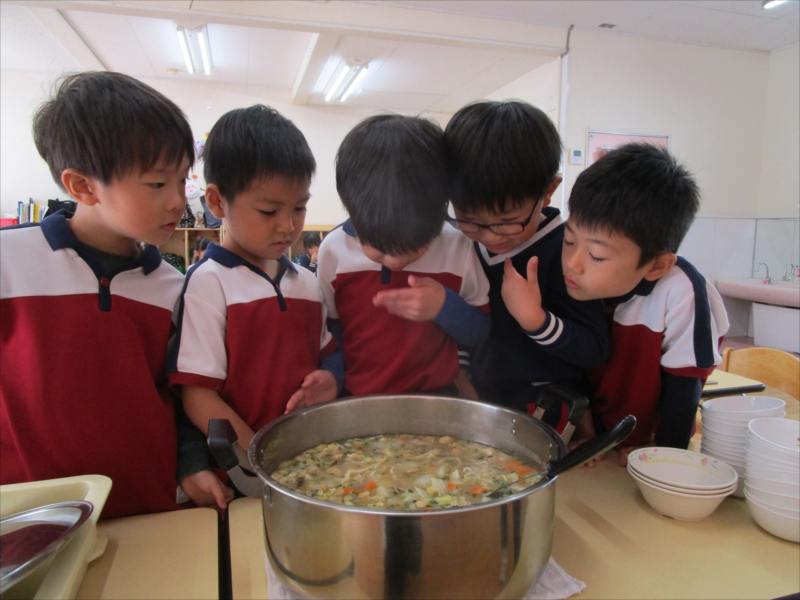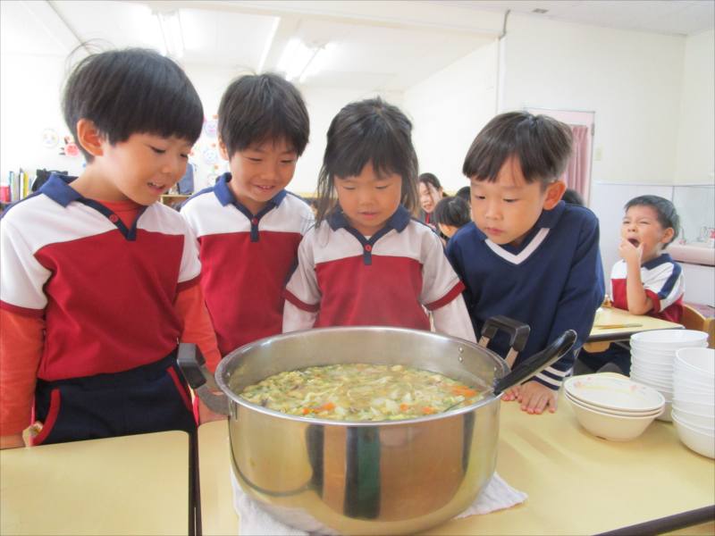 みんなで作ったお野菜たっぷりの団子汁完成💕