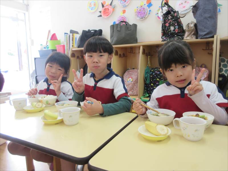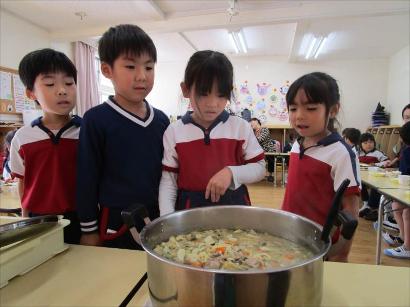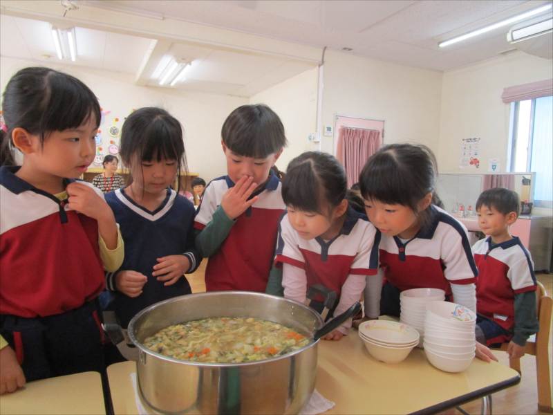 大道地域の方と作ったお野菜たっぷりの団子汁をうれしそうに味わっていたひまわりKIDS🌻でした☺💕