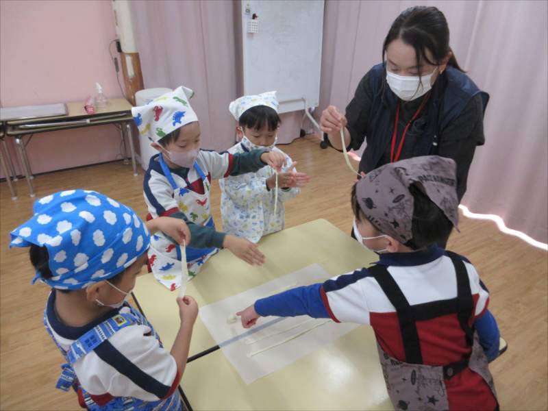 次に丸いおだんごを、団子汁用に伸ばしていきました!
