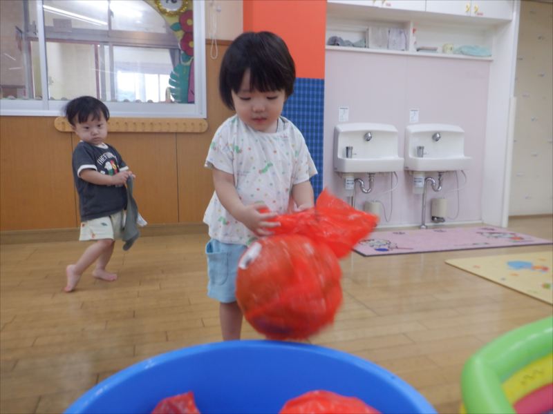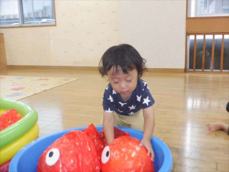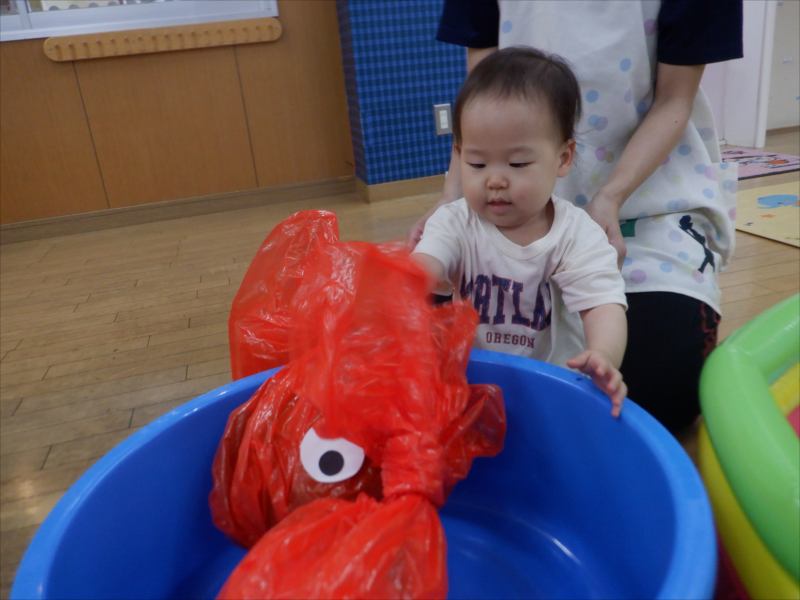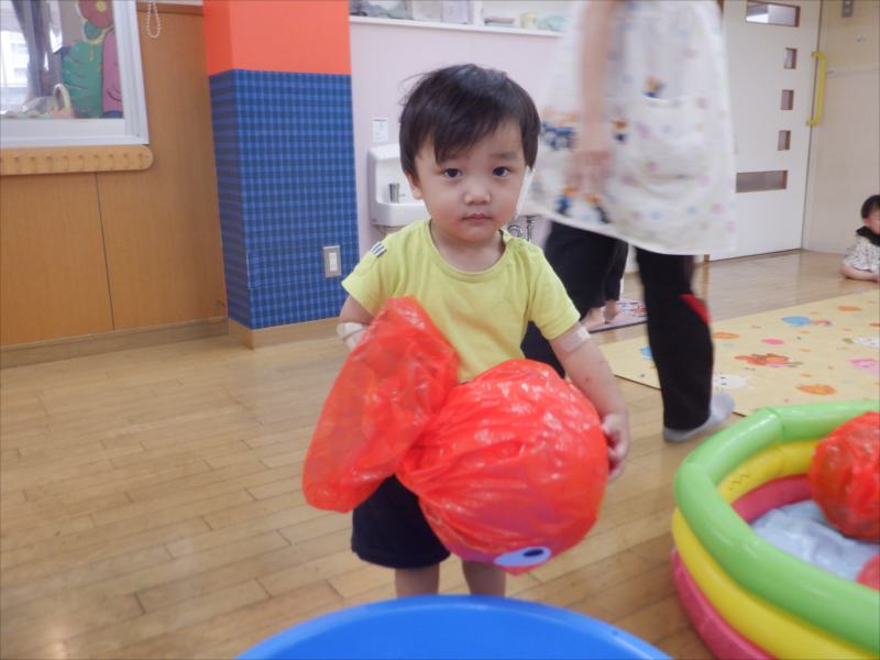 最後は、お魚を抱えてプールにお引越しするゲームもしてみました🎵