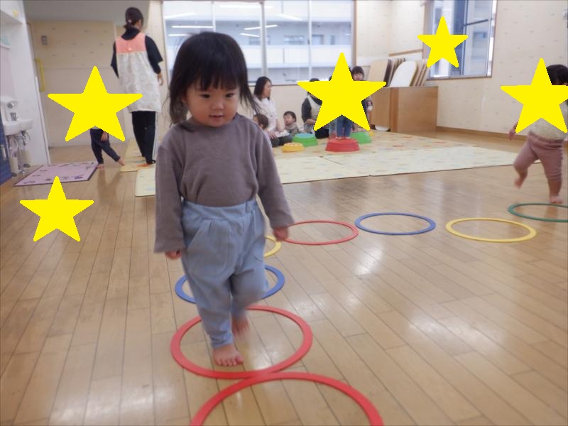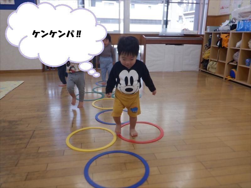 ケンケンリング  飛び石の4つの運動遊びをして遊びました🎵運動遊びを始めた当初は、保育士の手を借りてすることが多かったのですが、少しずつ自分で登りたい!自分で渡りたい!という気持ちが出てきて、意欲的に参加する姿が見られるようになりました🌈楽しそうに運動遊びをしている子ども達の姿をどうぞご覧ください✨✨