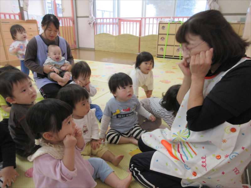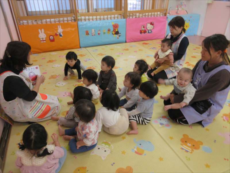 物語を理解しながら聞く姿が増え、友だちと一緒に想像する世界を楽しみ、安心できる雰囲気の中で言葉への興味が育ってきています。これからも沢山、絵本に親しめるようにしていきたいと思います。
