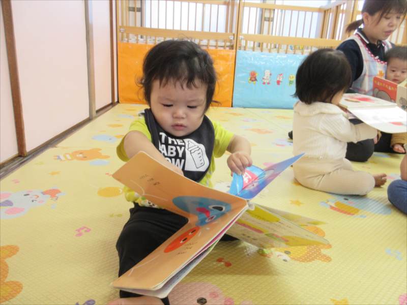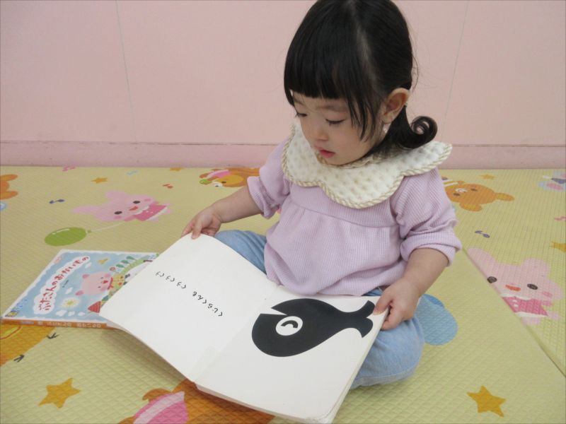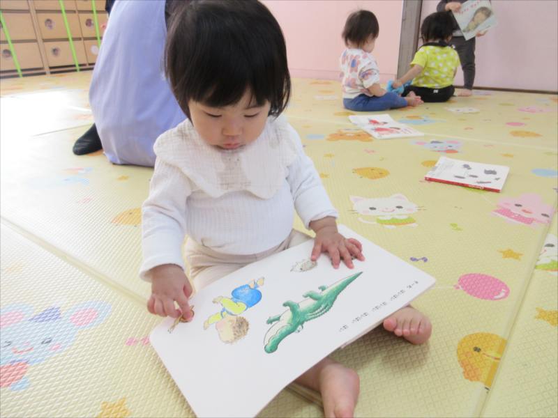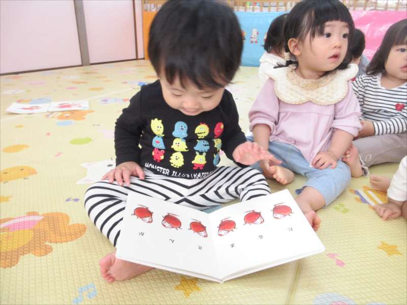絵本が大好きなゆり組の子ども達、読み聞かせの時間を楽しみにする姿が増えてきました。ページをめくるたび、声を上げたり、指差しをしながらお話の世界に夢中になっています。お気に入りの絵本を見つけるお友だちもいて集中して最後まで聞ける時間が少しずつ増えてきました。