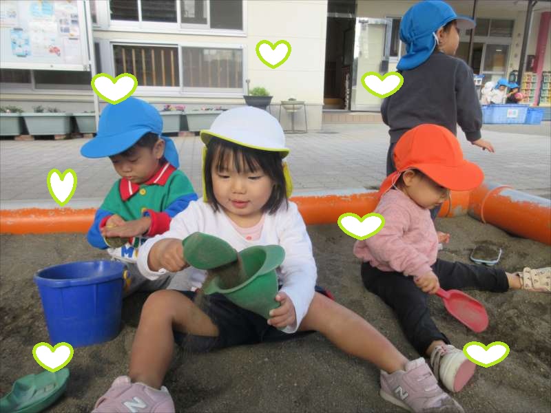 砂場では、アイスクリーム屋さんごっこなどをして楽しそうですね‼