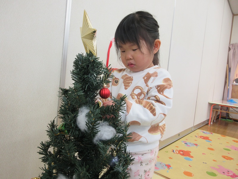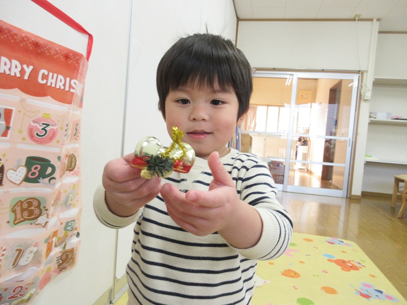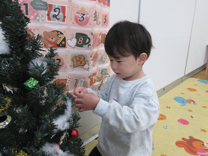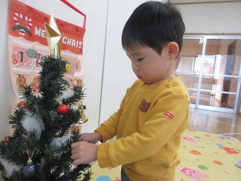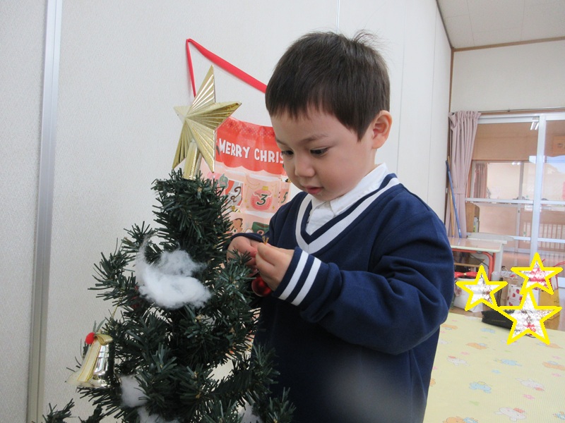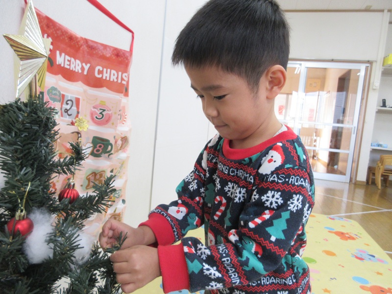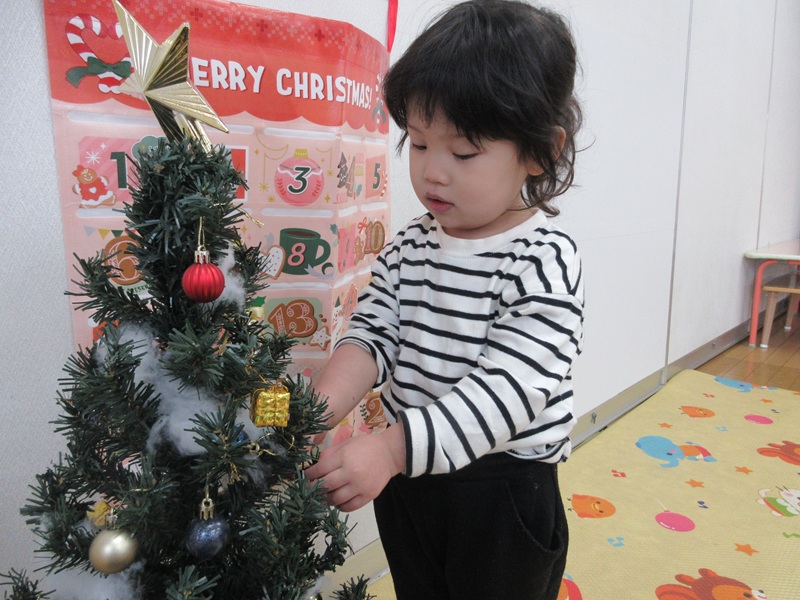 12月に入り、毎日アドベントカレンダーに入っているクリスマスツリーのオーナメントを飾ってきた、すみれ組さん🌟