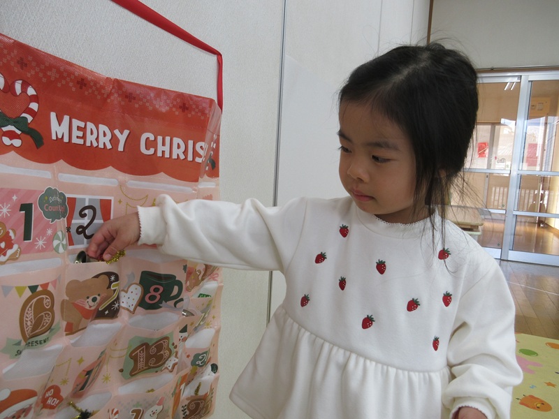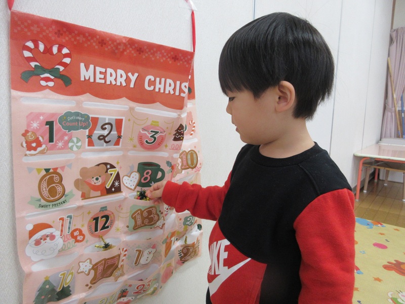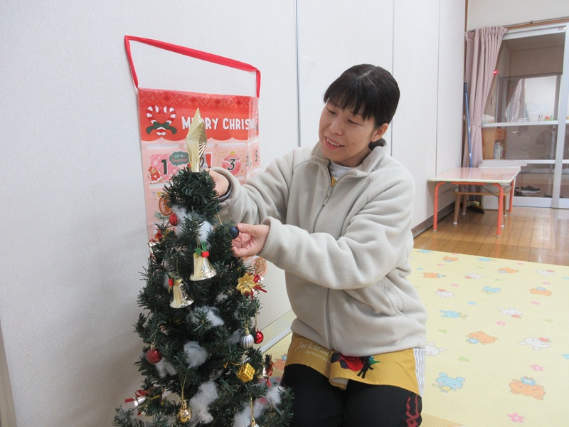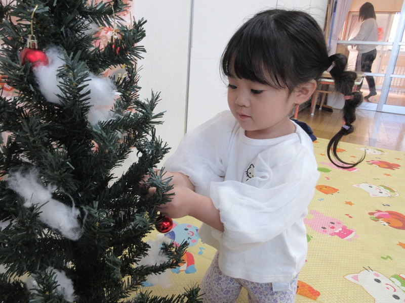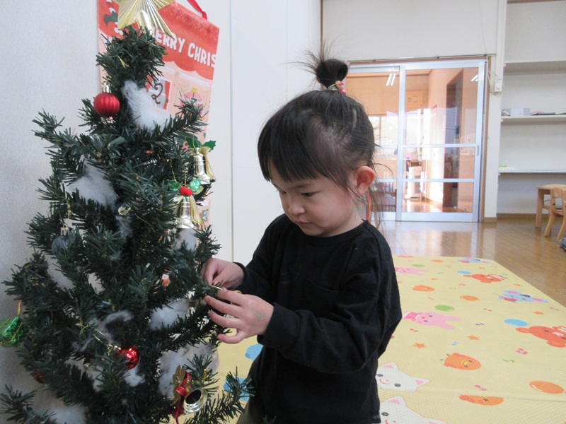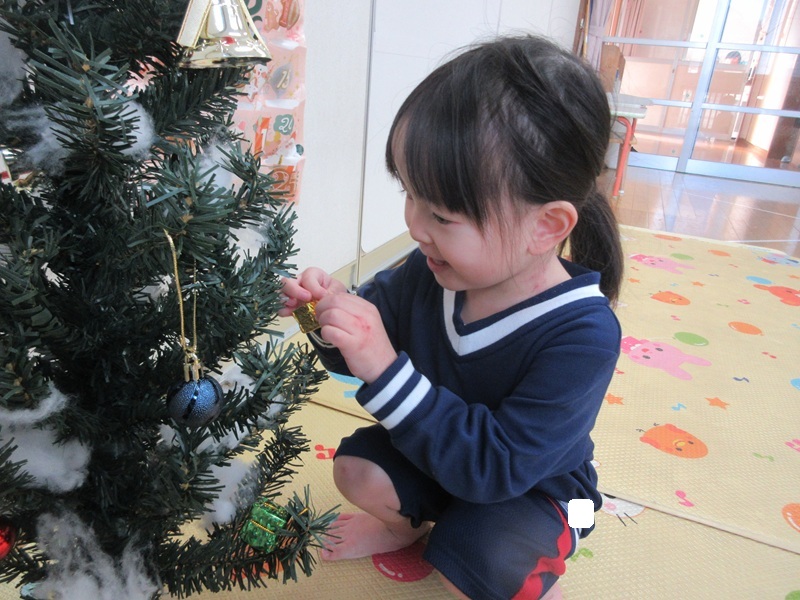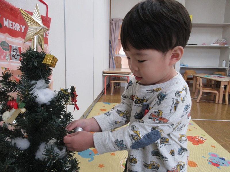 12月に入り、毎日アドベントカレンダーに入っているクリスマスツリーのオーナメントを飾ってきた、すみれ組さん🌟