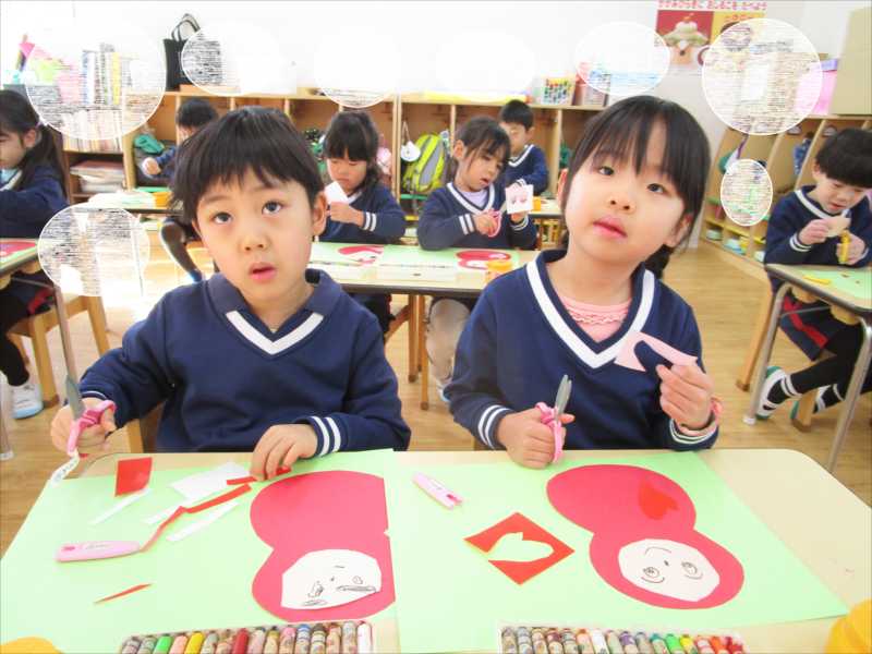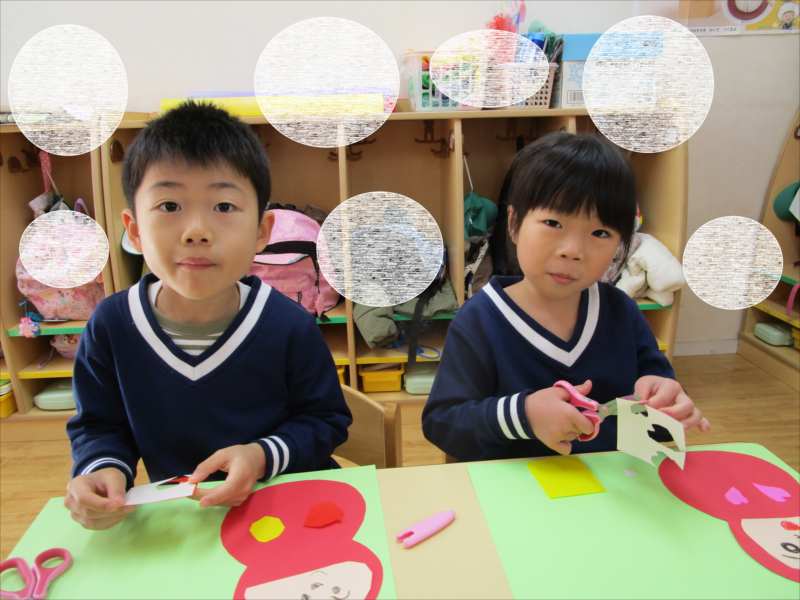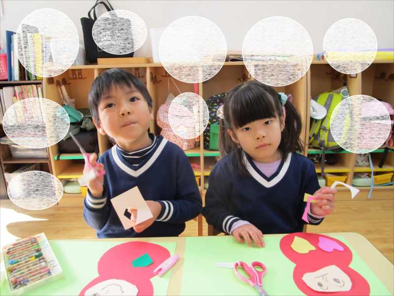 製作が大好きなひまわり組(^^♪1月の製作では・・・新年にちなんで、「だるま・絵馬」を作っていきました。まずは、だるまの顔を切って思い思いに顔と模様を作っていきました。「だるまってどんな顔だったかな?」と考えながら、面白い可愛いだるまができあがりそうです!