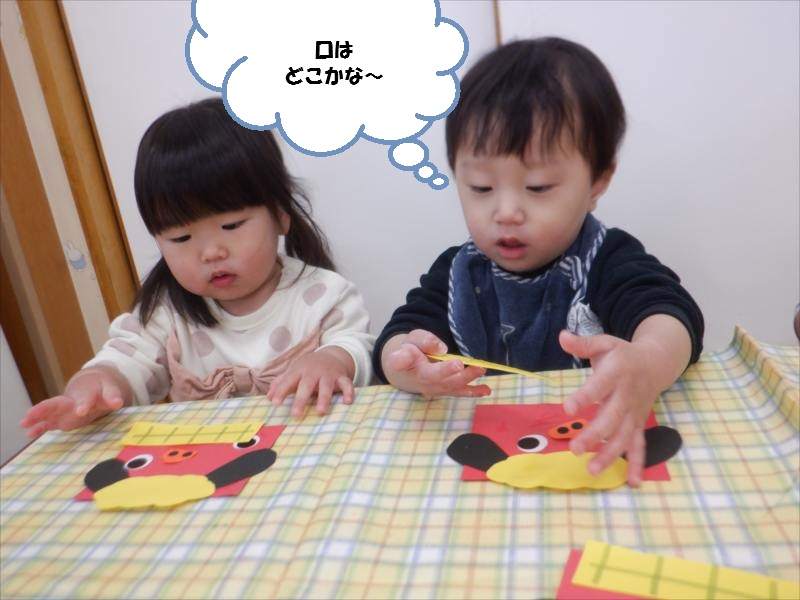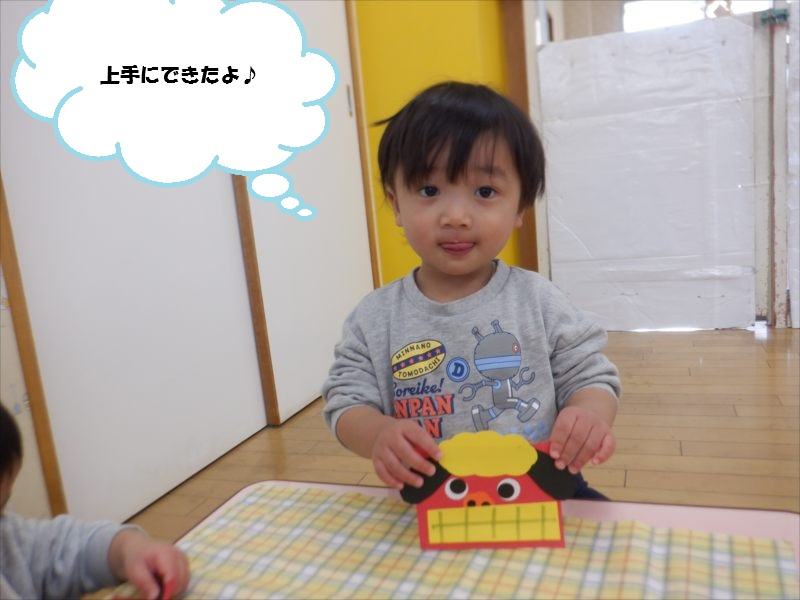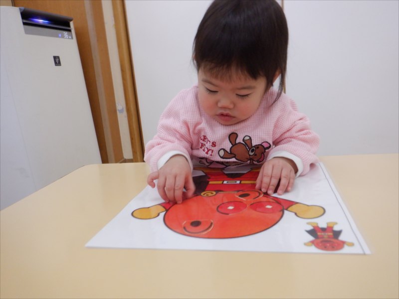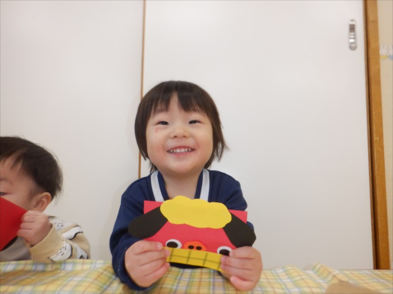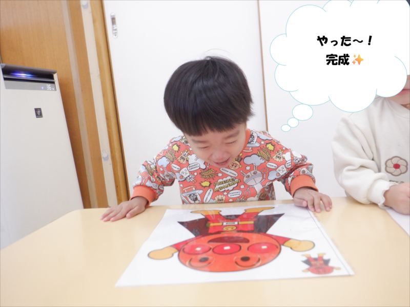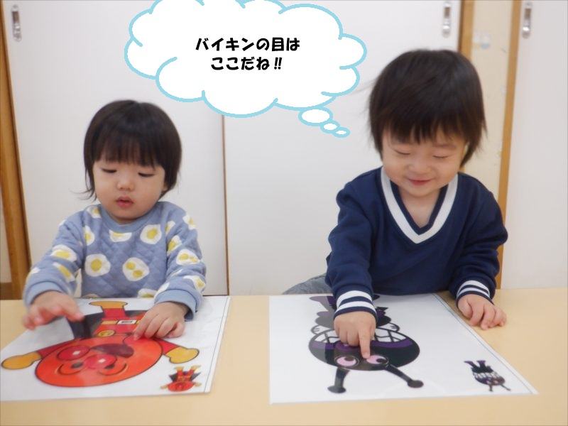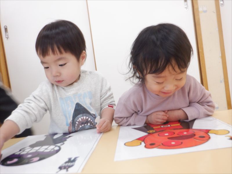 最後に、お正月遊びでアンパンマン・バイキンマンの福笑いをして遊びました♪