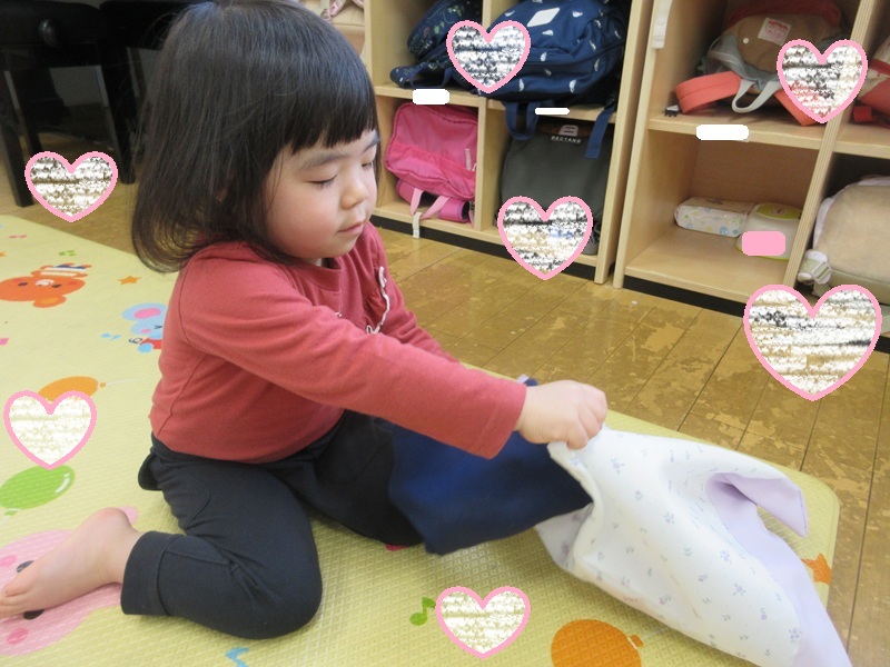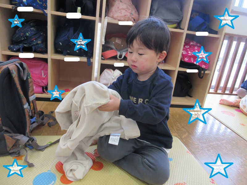 最初は上服を脱ぐのを難しそうにしていましたが毎日、繰り返し練習する内に上手になりました✨