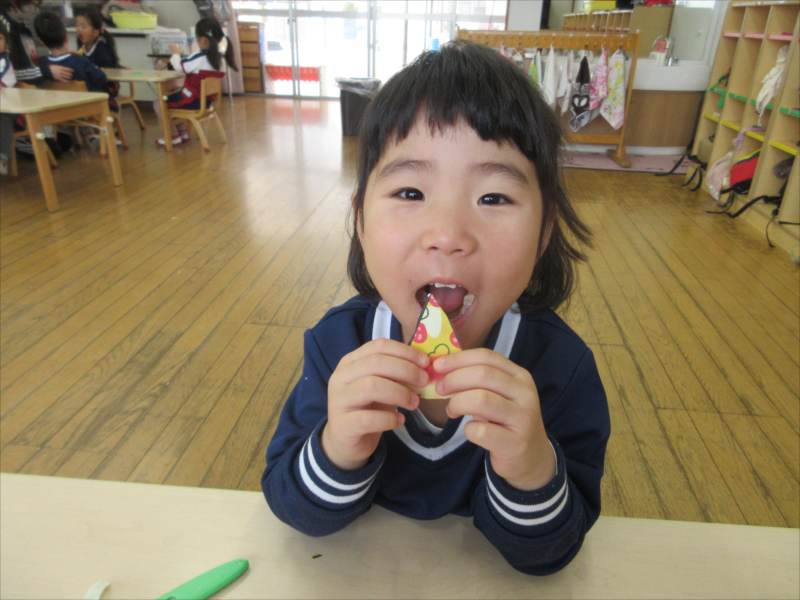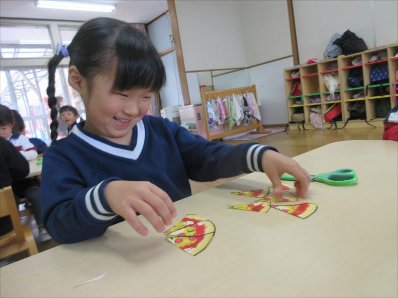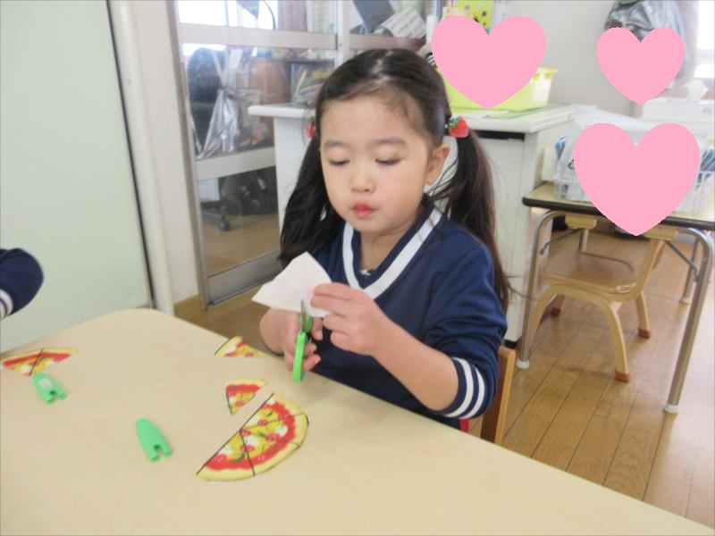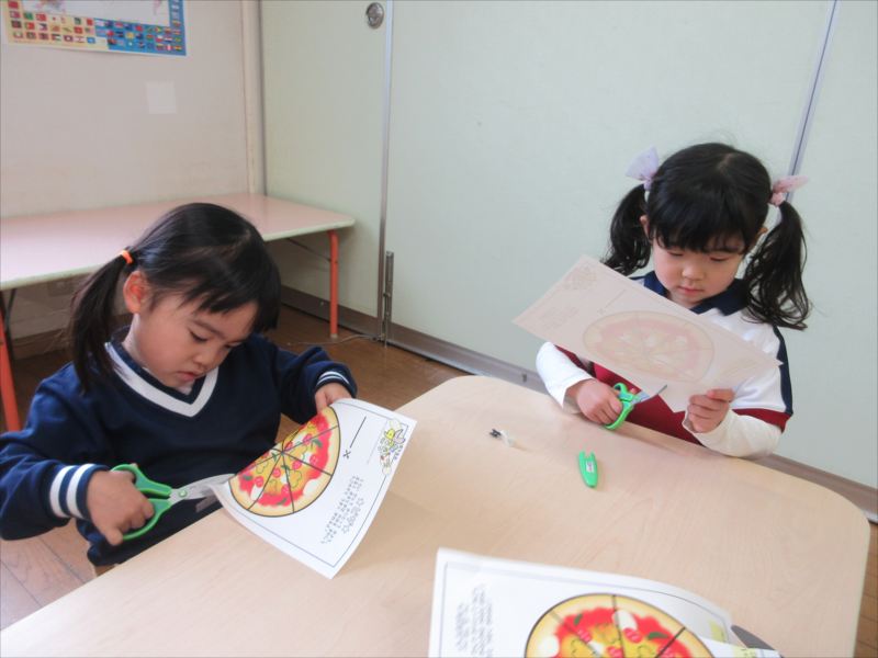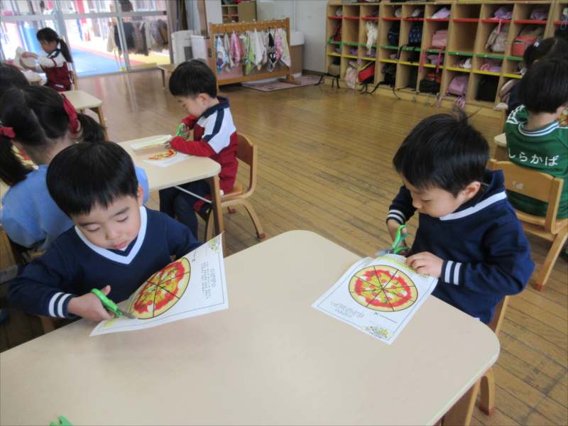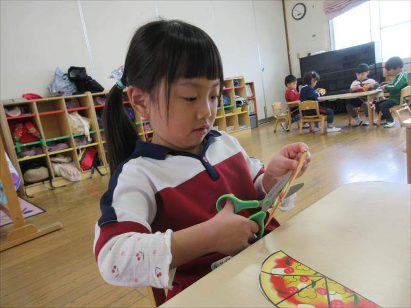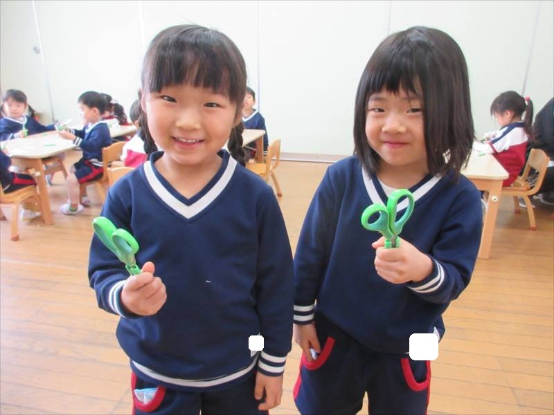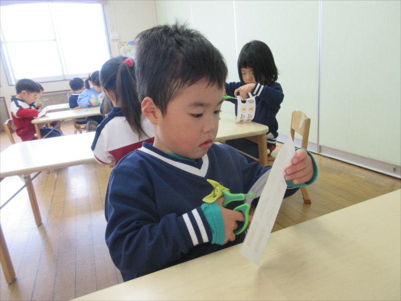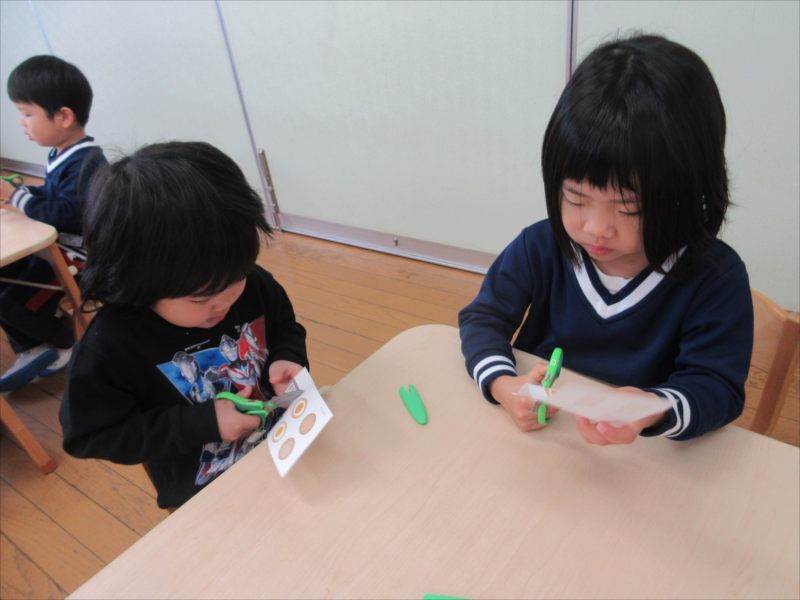 はさみと反対の手で紙を回しながら切るのが難しかったようですが、頑張っています!