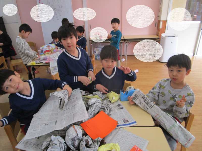 新聞紙や廃材をつかって、各グループで準備をしていくよ(^O^)  「なんだか形になってきたね」「楽しみーーー」集中して製作を楽しんでいます✂✂✂
