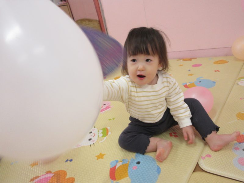 風船がふわっと舞い上がる瞬間、ぱっと目を丸くして、嬉しそうにニコッと笑う子ども達