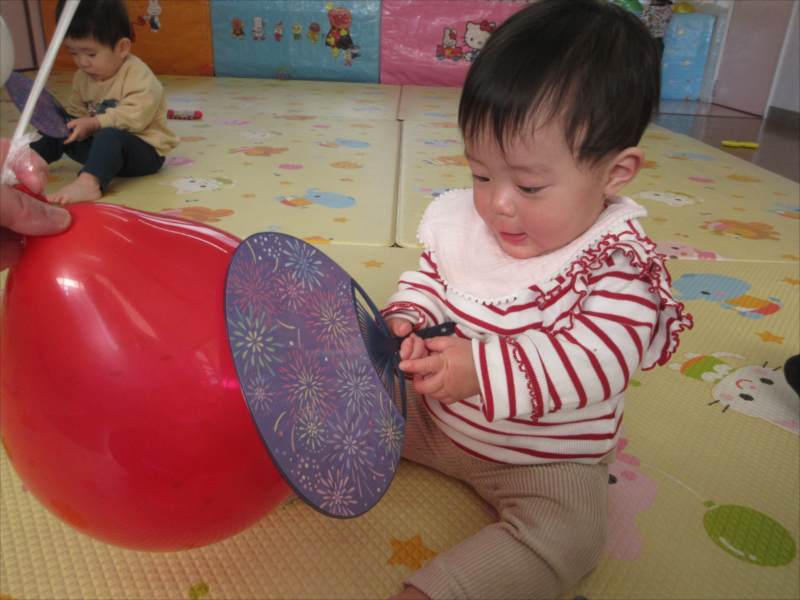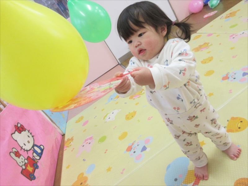 ぶら下がっている風船をうちわにのせてバランスをとってみたり、、、なんて遊びをする子も(^▽^)