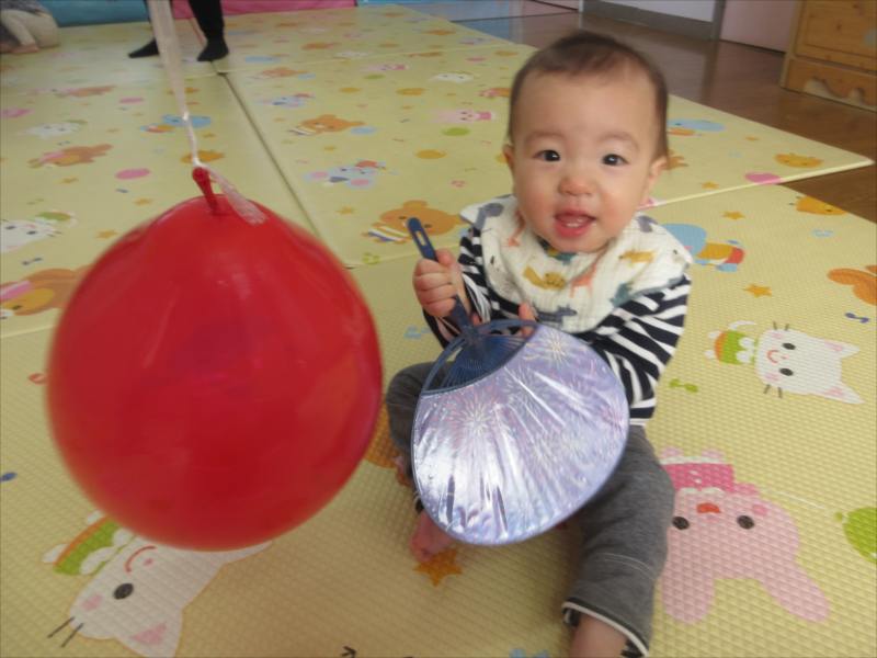 うちわを当てるたびに、「ぽん、ぽん」と口にして風船羽根つきを楽しむ子もいました