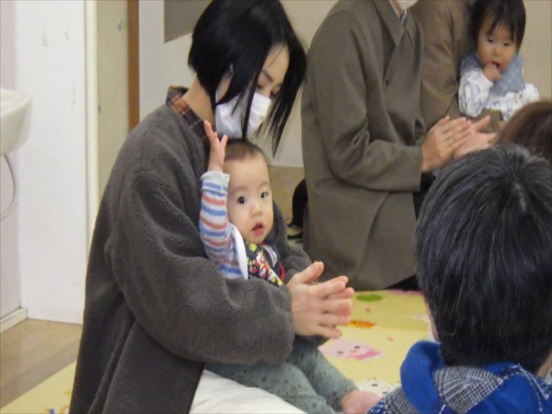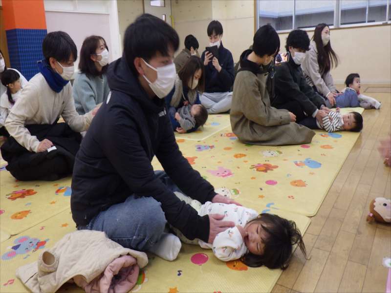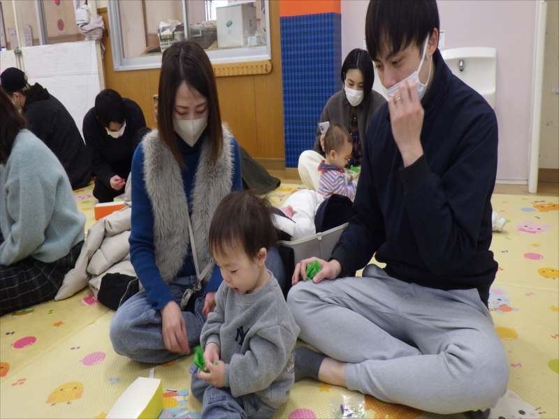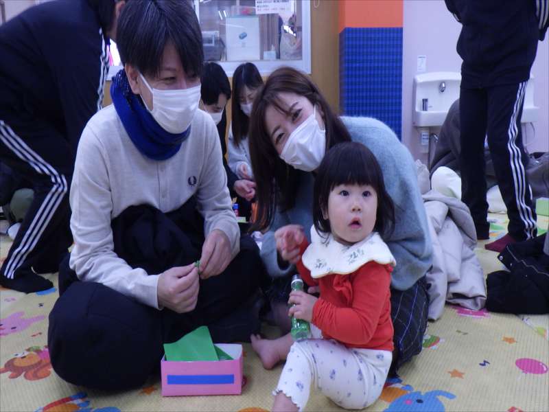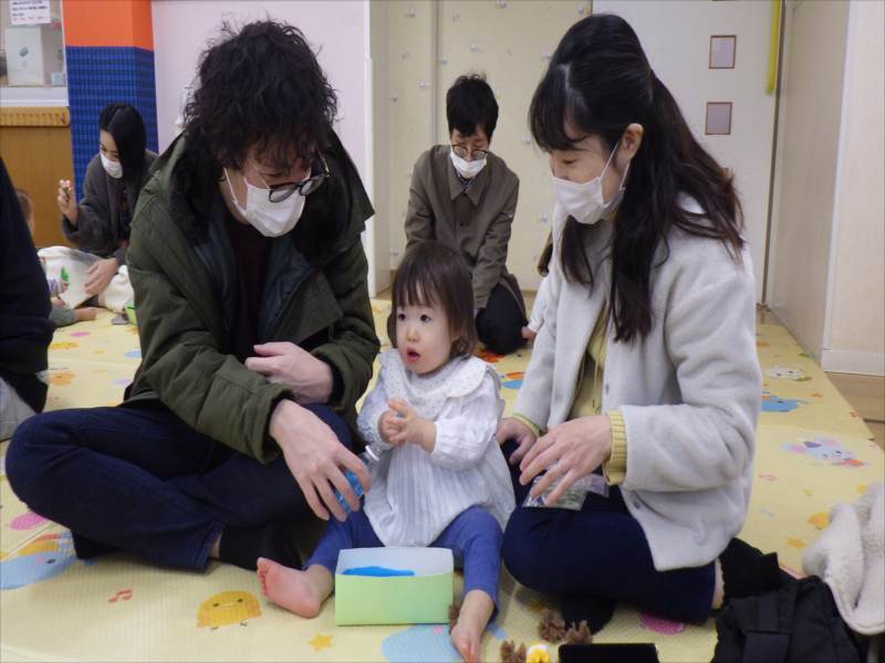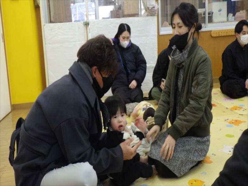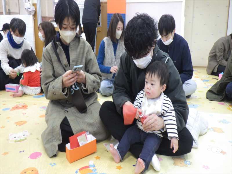 今日は、お家の方と一緒に朝の会をしたり、触れ合い遊びを楽しみました!