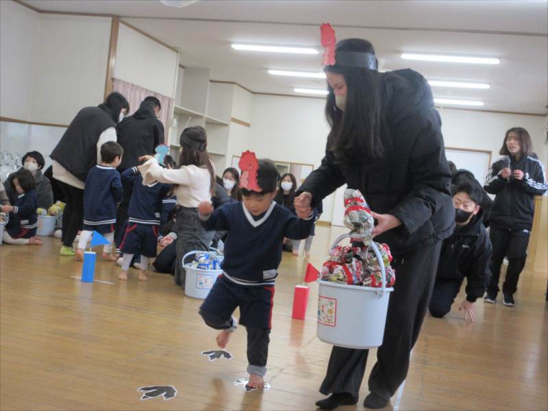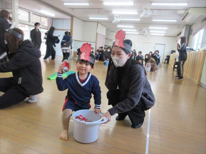 続いて、鬼のガラガラ作りをしました!