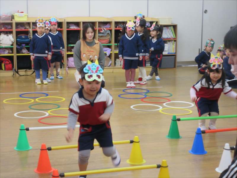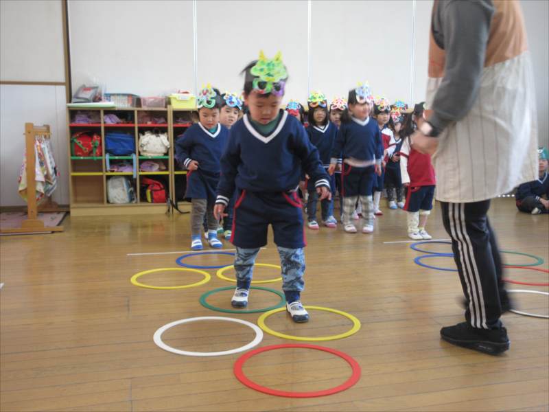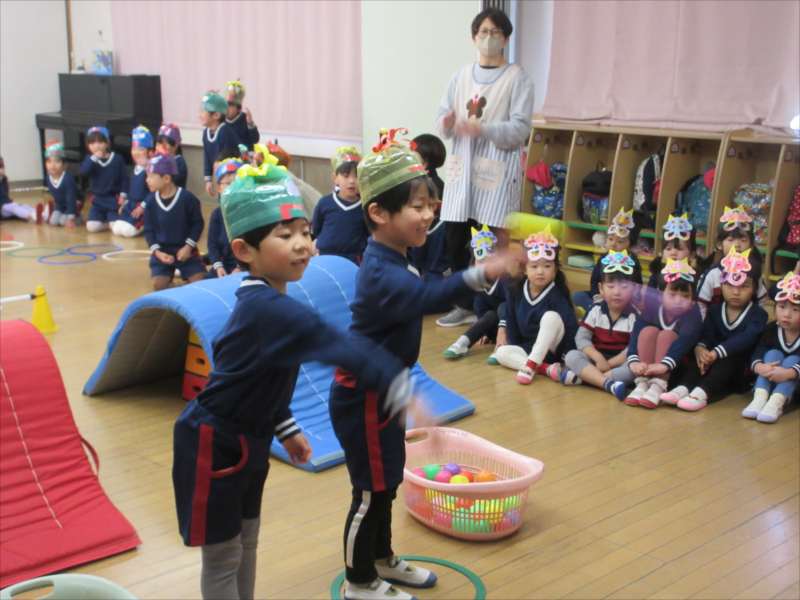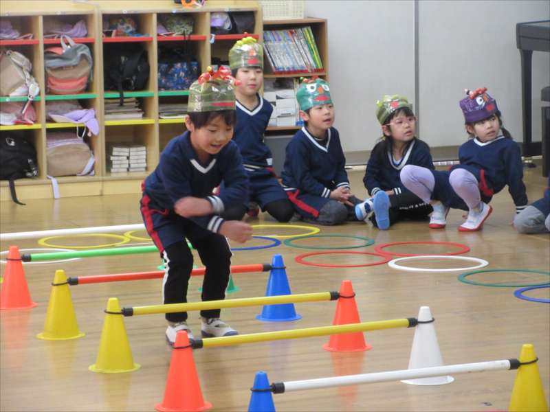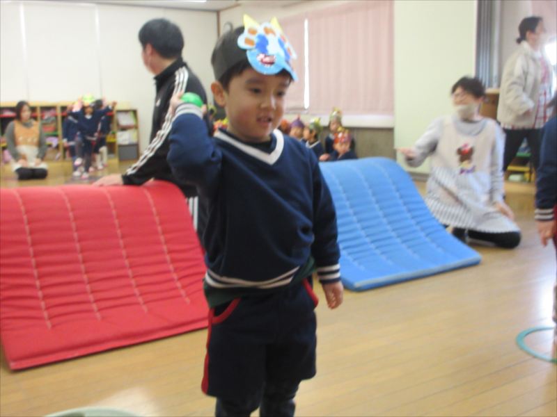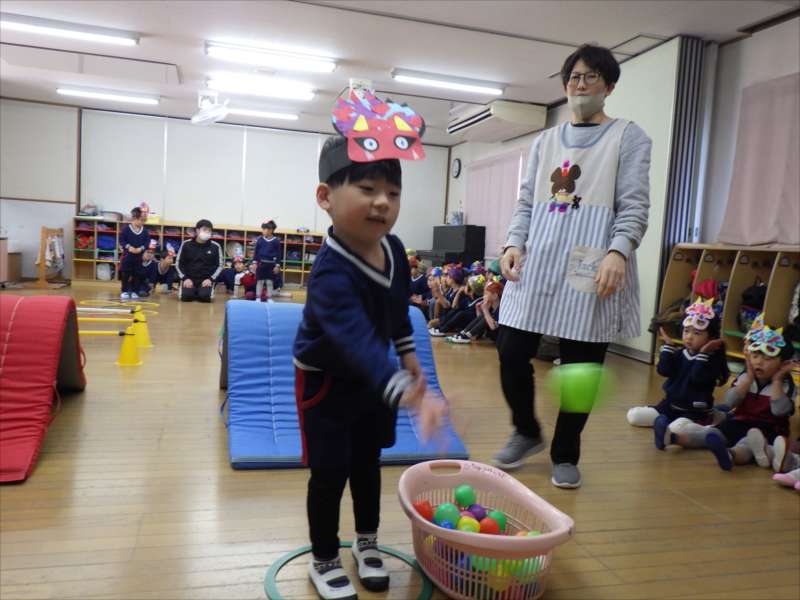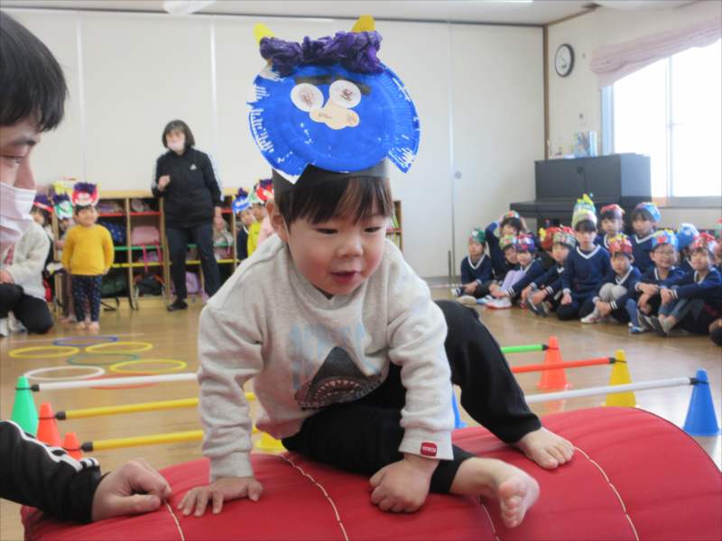 ♪豆まき♪の歌を歌ったら、いよいよ「鬼退治サーキット」のスタートです👹