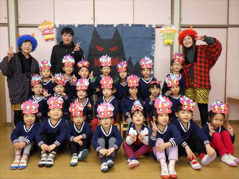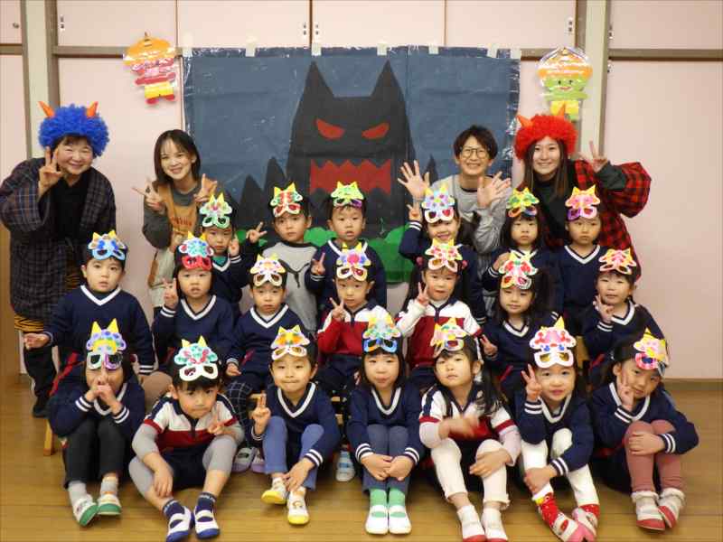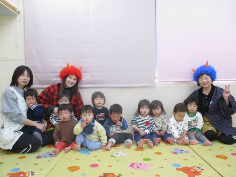 担当保育士が鬼に変身し登場すると、大喜びのしらかばKIDS。