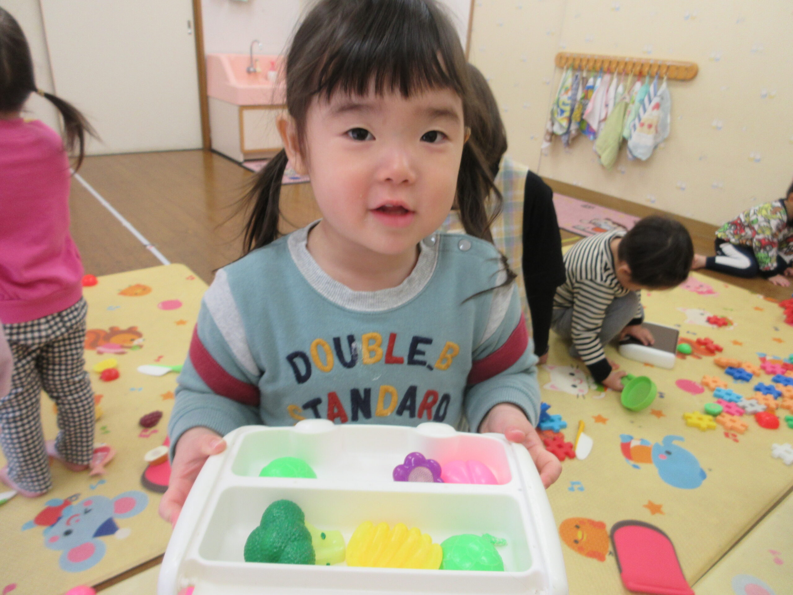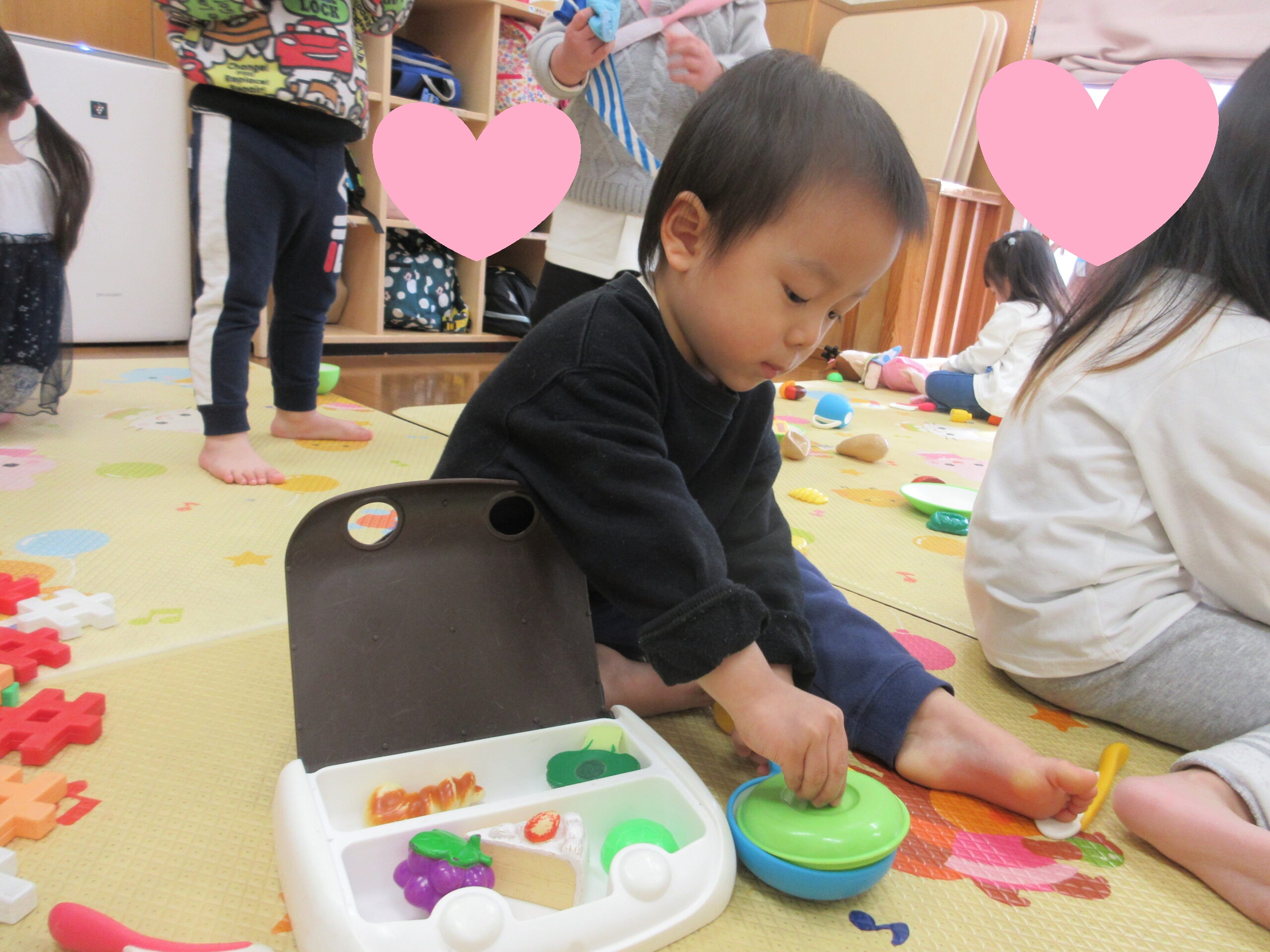 今日は、おままごとやブロック遊びの様子をお伝えします。