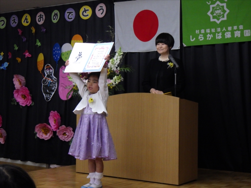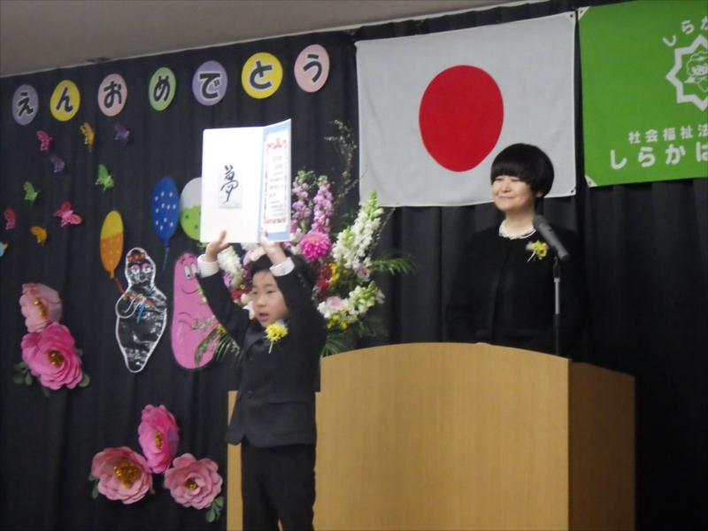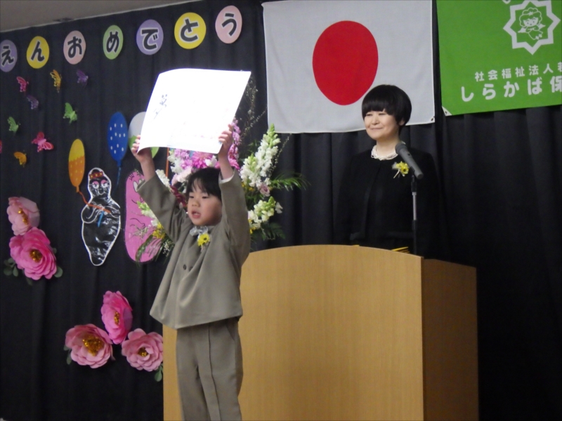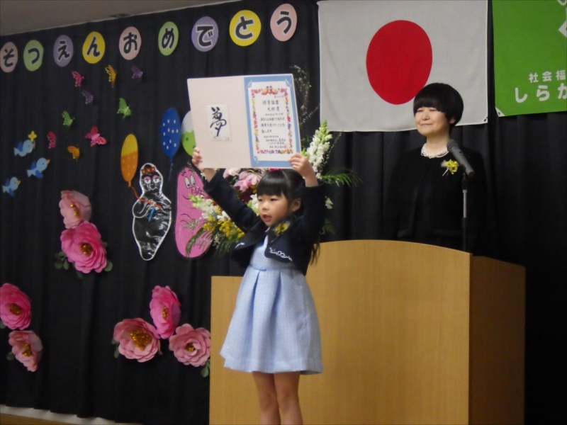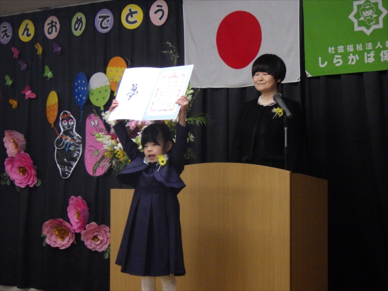 åœ’é•ˇå…ˆį”Ÿã‹ã‚‰äŋč‚˛č¨ŧ書を受け取り大きãĒåŖ°ã§å°†æĨぎå¤ĸをį™ēčĄ¨ã—ãžã—ãŸīŧ