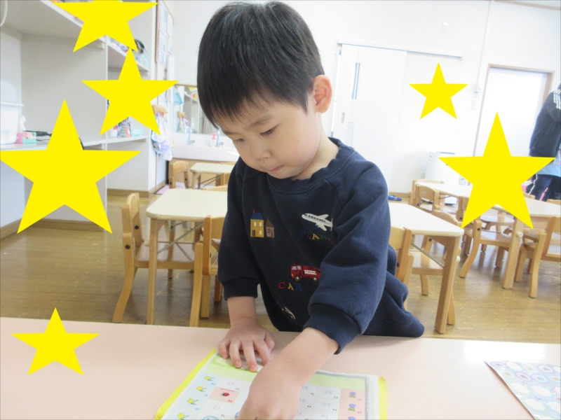 今日は何日かな?と一緒に考えて貼る姿が、見られるようになりました(^▽^)