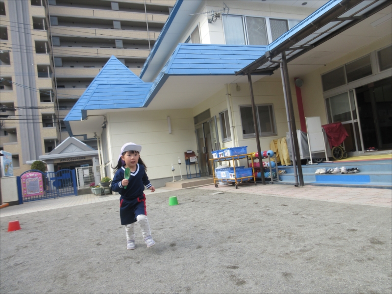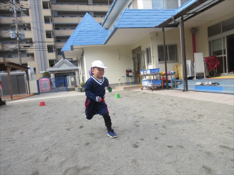 元気いっぱい走って、バケツをまわって次のお友だちへ
