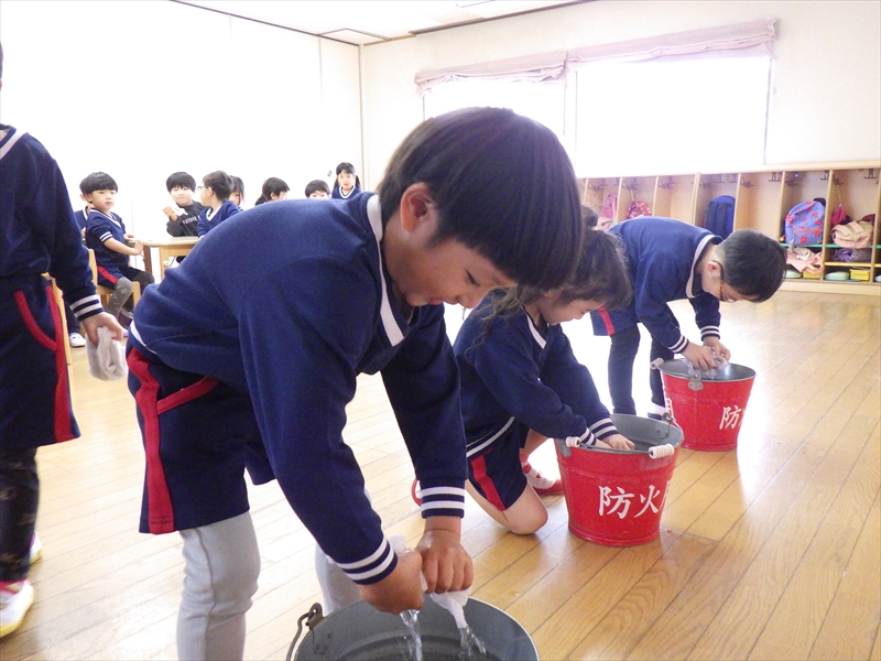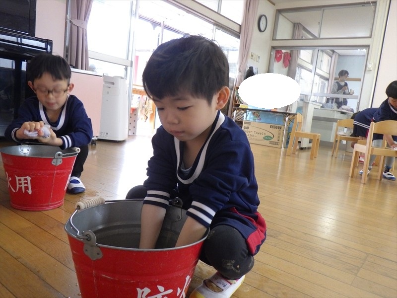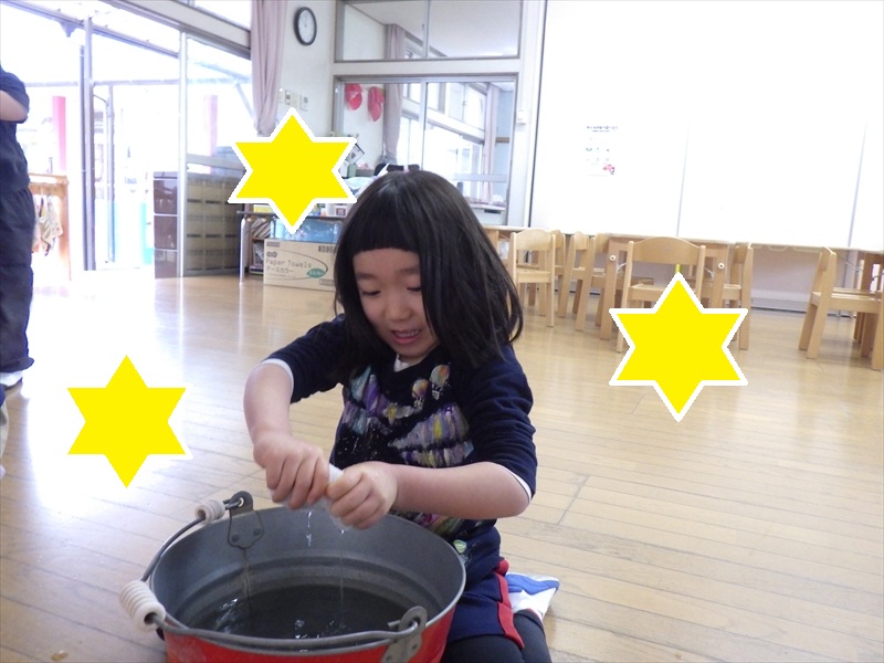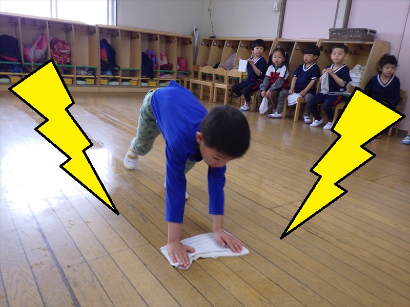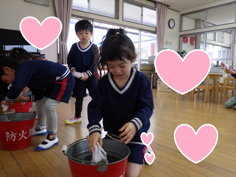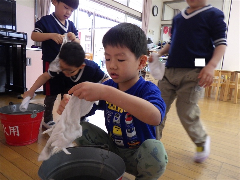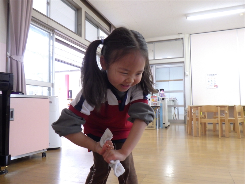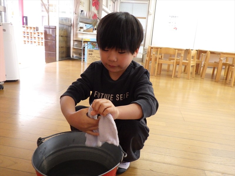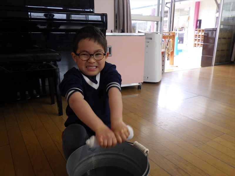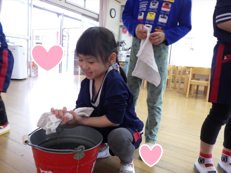 力いっぱい雑巾を絞るさくらKIDSさん!!