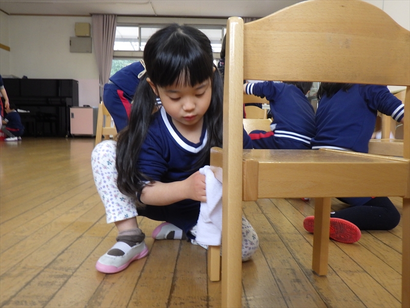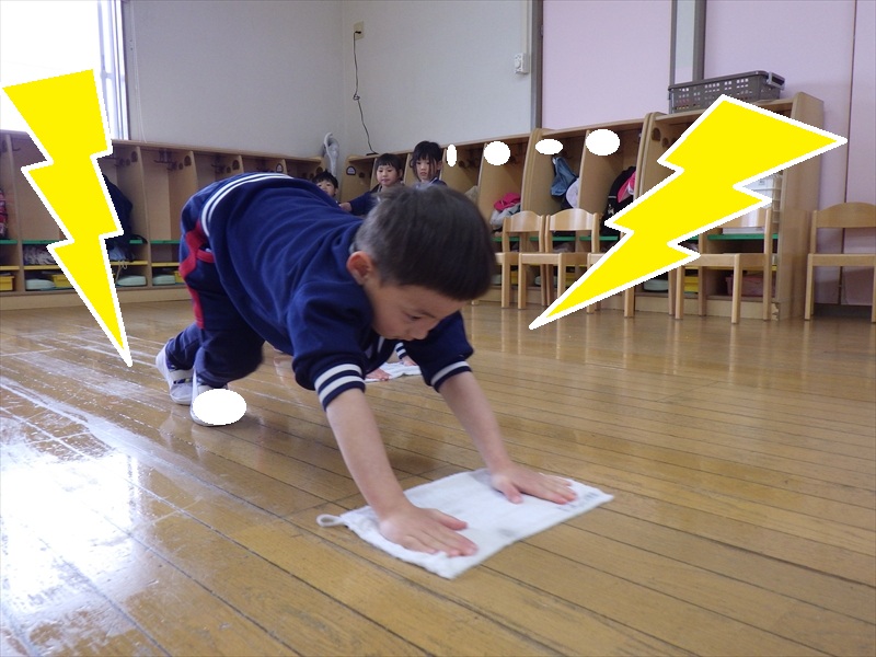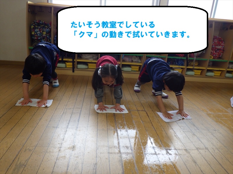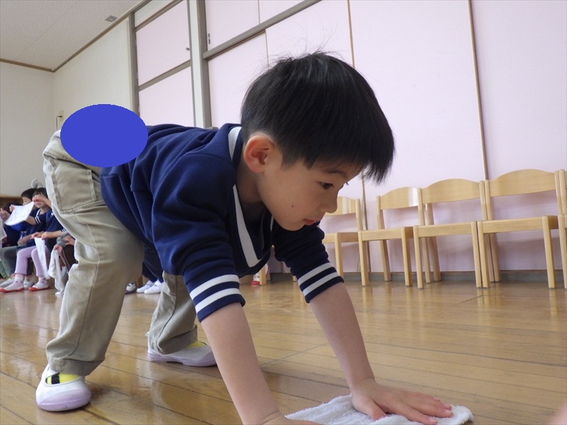 次にお友だちと一緒に、床拭きです。
