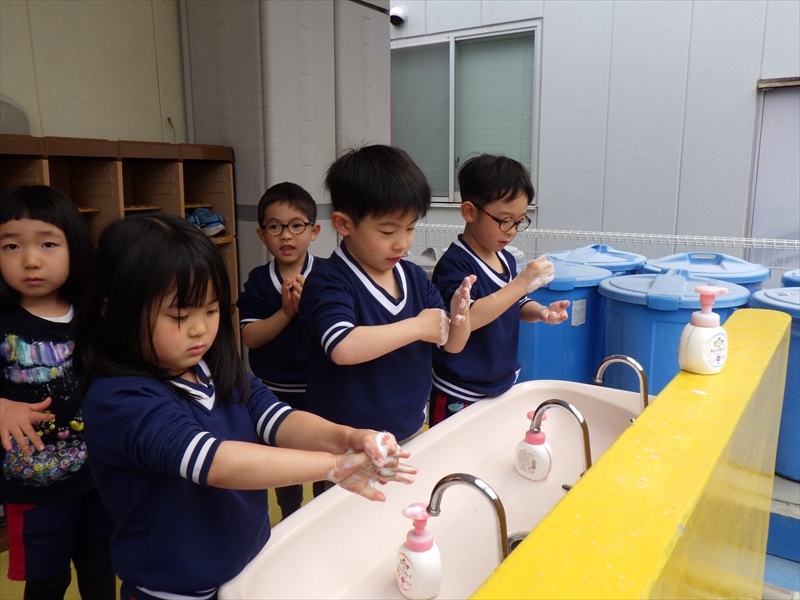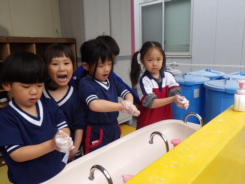 お部屋が綺麗になったら、手を洗ってお掃除終了です!!